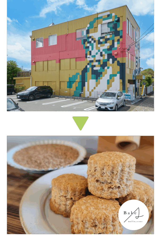 Bake Aは、「全粒粉(ぜんりゅうふん)」を使って焼き上げる、自家製スコーン&マフィンの専門店です。