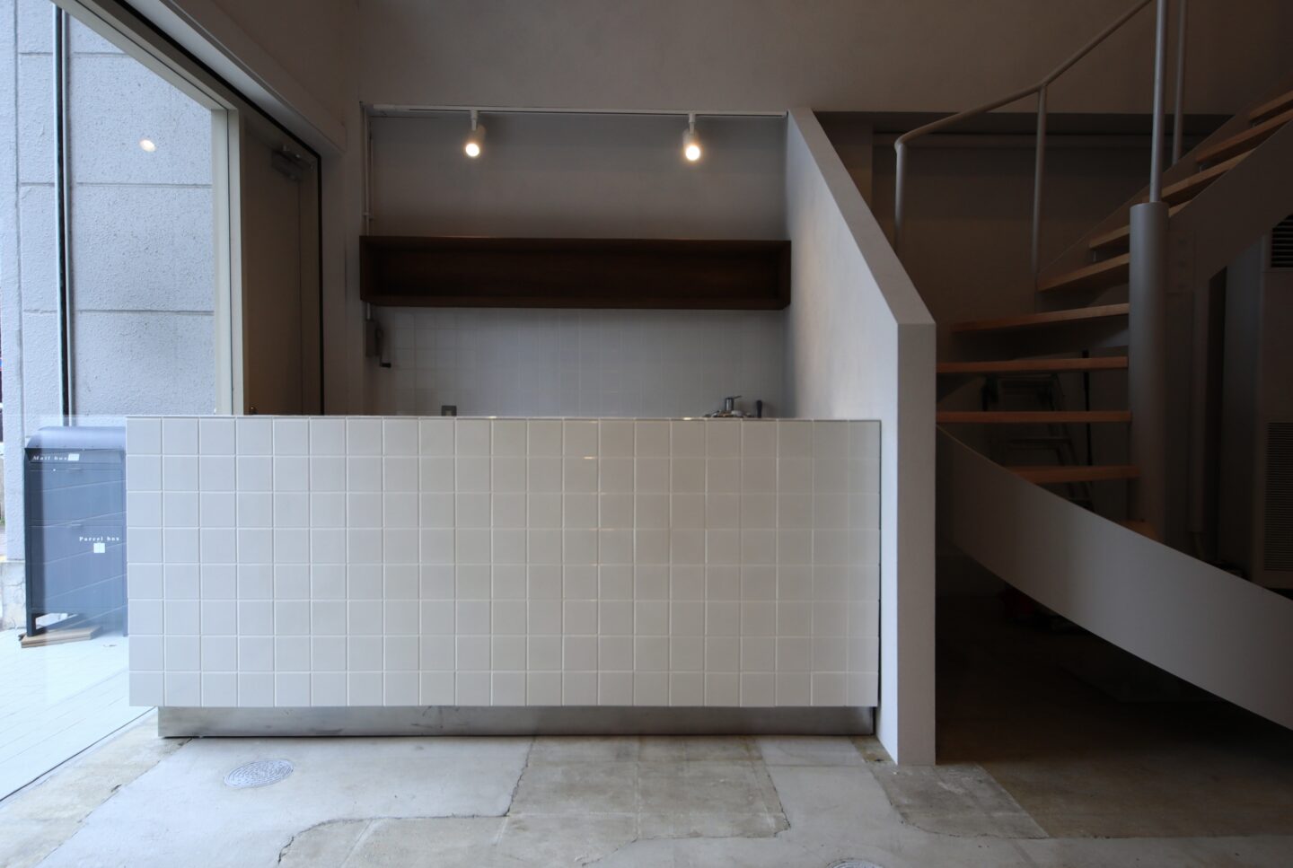 2坪ほどのミニマルなスタンドを、2店舗が週の前半・後半に分けてシェア利用します。